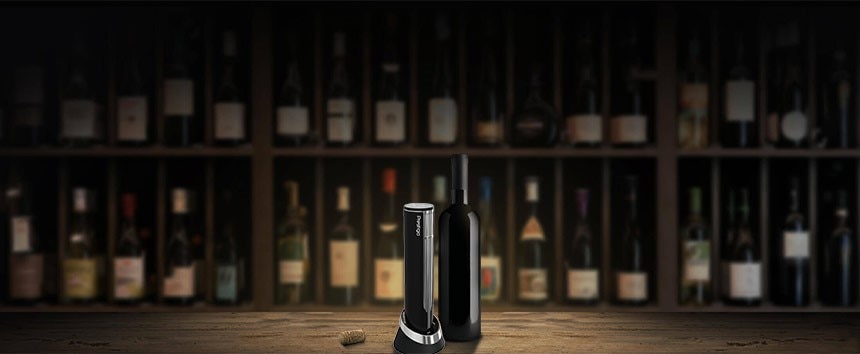 Uitati de recuzita incomoda pe care o utilizati mai devreme pentru a indeparta folia. Acum aveti un cutit dedicat pentru taierea usoara si rapida a foliei. Se afla in partea superioara a deschizatorului electric. Asezati-l pe gatul sticlei, rotiti-l de cateva ori si indepartati folia.