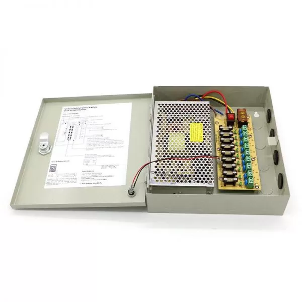Sursa de alimentare 10A cu 9 iesiri protejate LN-IPS12V10A-9; alimentare 12v; DC Adjustable Range: ±10% Rated Voltage; Voltage Tolerance: ±2.0%; Line Regulation: ±0.5%; Load Regulation: ±1%; Setup,Rise Time,Hold Up Time:200ms,50ms, 20ms/230VAC; AC Voltage Range: 85-264VAC; Frequency Range: 47-63Hz; Efficiency:90%; AC Current: 0.86/115V 0.4A/230V; Over- load: 105%-150% hiccup mode,Auto-recovery; Over-voltage: 115%-135% Cut Off the Output,Auto-recovery; Over-temp. : Shut down O/P voltage, Auto- recovery; Isolation Resistance:I/P-O/P,I/P-FG,O/P-FG:100M Ohms/500VDC / 25C°/ 70% RH; Safety standards: CE,RoHS,FCC,ISO9001; dimensiuni: 230x205x50mm; greutate: 1.34kg