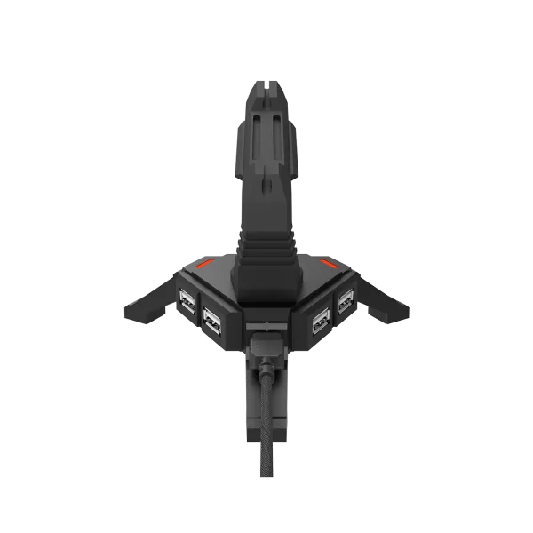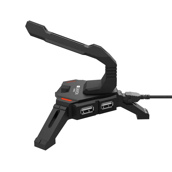 2 in 1 Gaming Mouse Bungee stand and USB 2.0 hub, 4 USB hub, 1.5m mircro to USB braided cable, Weighted design with non-slip grip, LED light, Black, size:128*123*102mm, 138g