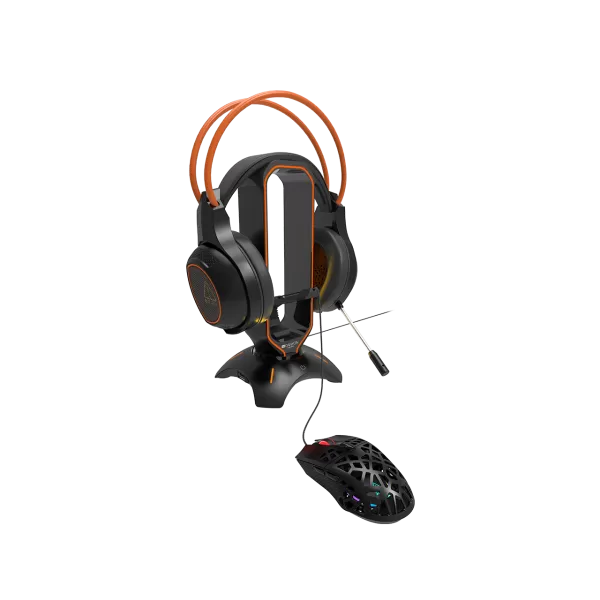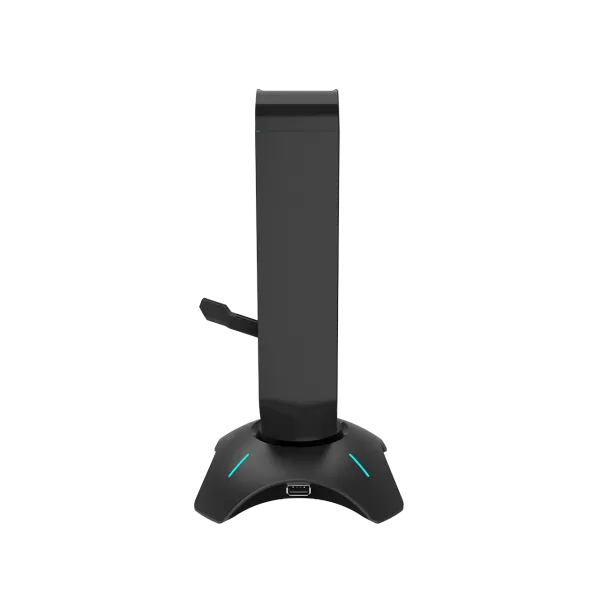Gaming 3 in 1 Headset stand, Bungee and USB 2.0 hub, 2 USB hub, 1.5m standard USB to USB 5mm PVC cable, Weighted design with non-slip grip, Touch switch to control LED light, Black, size:126*126*251mm, 383g