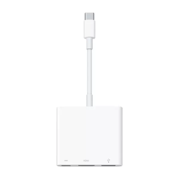Adaptorul Apple de la USB-C la Digital AV te lasă să îți conectezi MacBook-ul ce are port USB-C sau MacBook Pro cu Thunderbolt 3 (USB-C) la un monitor extern HDMI, iar în același timp poți conecta un dispozitiv standard USB și cablul de încărcare USB-C.