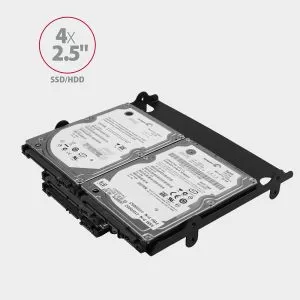 Adaptorul metalic AXAGON RHD-435 pentru montarea a până la patru HDD / SSD de 2,5" sau pentru montarea a două unități de 2,5" și una de 3,5" în poziția de 5,25" a carcasei PC-ului. Acest adaptor rezolvă în mod inteligent problema plasării de discuri de 2,5" sau 3,5" în diferite tipuri de carcase de computer. În poziția superioară, pot fi utilizate unități SSD standard de 7 mm și HDD de 9,5 mm de 2,5". Poziția inferioară este pentru un hard disk standard de 3,5" alternativ pentru SSD / HDD de 2,5" fără limitare a înălțimii discului. Găurile precise și șuruburile furnizate asigură o instalare ușoară și fără probleme a cadrului în carcasa computerului. Structura metalică și profilul cadrului ajută la disiparea căldurii de pe disc. Caracteristici: • Suportă 4x SSD de 2,5" sau HDD de până la 7 și 9,5 mm înălțime. • Suportă 1x HDD de 3,5" sau 2x SSD de 2,5" sau HDD de orice înălțime de disc. • Dimensiunile cadrului și orificiile de montare corespund poziției standard de 5,25" a carcasei PC. • Cadrul este realizat dintr-o tabla de otel si vopsit in negru. • Dimensiuni exterioare ale ramei 146 x 130 x 28 mm, greutate 130 g. Pachetul contine: • Cadru pentru 4x discuri de 2,5" sau 2x 2,5" + 1x discuri de 3,5"; • șuruburi și material de montare pentru montarea discurilor și a cadrului, • manual de instalare tipărit în CZ / DE / DK / ENG / ESP / FIN / FR / GR / HR / HU / IT / NL / PL / PT / RO / RU / SK / SWE / TR / BG / CN / ARA, • ambalat într-o cutie de carton cu orificiu pentru agățat.