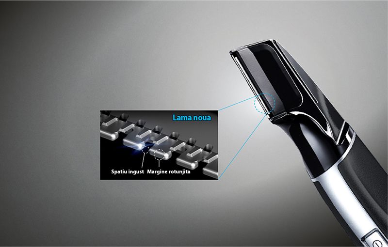 Lama cu functie de protectie a pielii prinde eficient smocurile de par, reducand la minimum disconfortul pielii. Blanda cu pielea moale Marginile lamei fixe sunt late si rotunjite pentru a reduce disconfortul pielii. De asemenea, spatiile libere de pe lama fixa sunt inguste, astfel incat pielea sa nu poata patrunde si sa fie vatamata. |