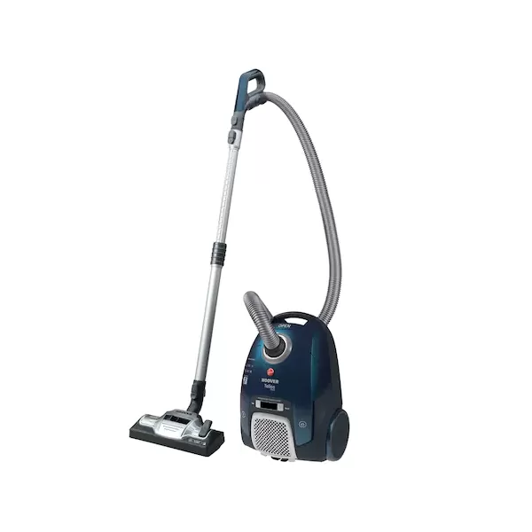 Aspirator cu sac HOOVER TX60PET 011, afisaj LED, sac epa lavabil, capacitate 3.5L, putere 450 W, 1 rotita, maner tip bucla, tub telescopic din metal cu reglator de forma trage - trage, raza de lucru 10 m, culoare albastru