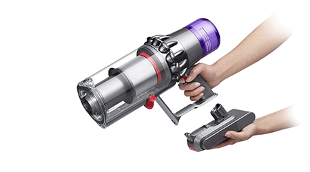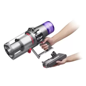 Dyson V11 Absolute are doar 3 kg si se transforma in aspirator de mana printr-o simpla apasare de buton.