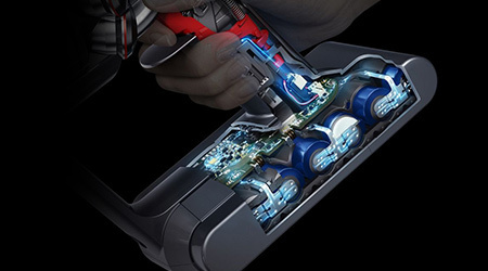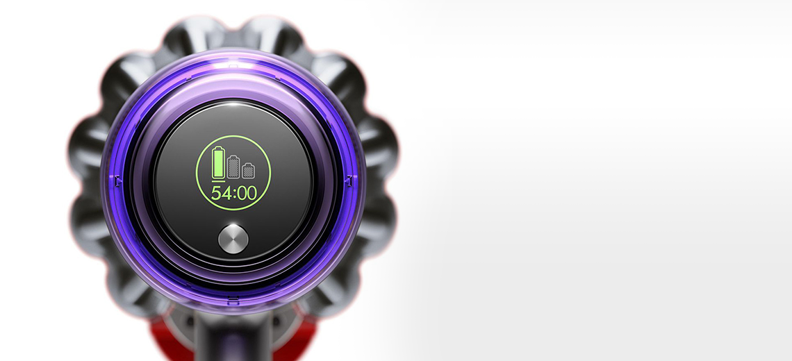 Optimizare inteligenta a bateriei Cu ajutorul sistemului inovator de optimizare a energiei si a comutatorului de pornire/oprire a bateriei, Dyson V11 Absolute optimizeaza timpul de aspiratie, pentru ca tu sa poti face curatenie in locuinta un timp mai indelungat, folosind modul ECO. |