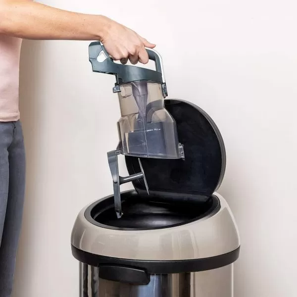 Puteti goli recipientul de praf conceput practic prin simpla apasare a unui buton fara a intra in contact cu murdaria colectata. Luminile LED unice ajuta la gasirea acumularilor ascunse de praf. Datorita rotilor pivotante, dispozitivul este deosebit de usor de manevrat in jurul mobilierului.