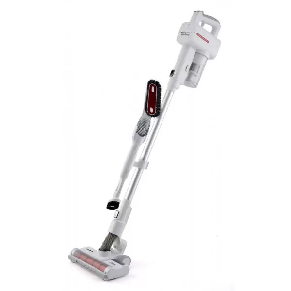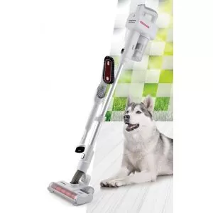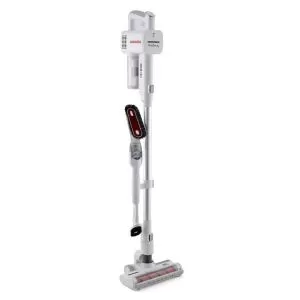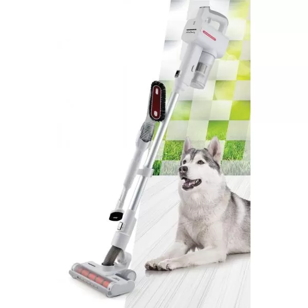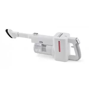 Aspirator vertical, acumulator cu litiu - 29,6 V, sistem ciclonic, motor de curent continuu fara perii, putere de aspirare: 23kPa, putere: 350W, 2 viteze: ECO (35 minute), Max (12 minute), perie electrica pentru podele, cu lampa LED, tub din aluminiu, capacitatea recipientului pentru praf: 0,35 L, curatare uscata, butonul de pornire/oprire pe maner, indicator stare acumulator, perie pentru covoare, perie pentru pardoseli dure, accesorii: duza pentru spatii inguste, perie multisuprafete , suport de perete, durata de incarcare: 5 ore