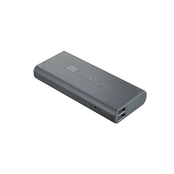 CANYON Power bank 10000mAh built-in Lithium-ion battery, max output 5V2.4A, input 5V2A. Dark Gray