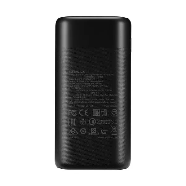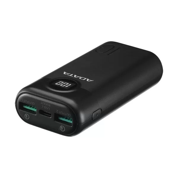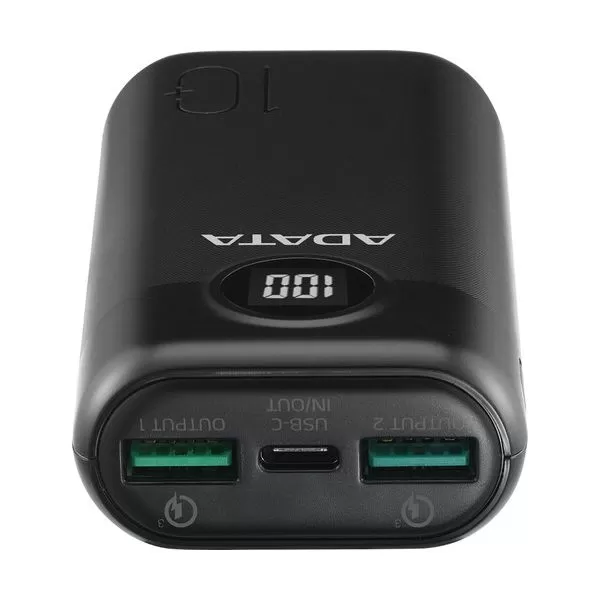 POWER BANK ADATA 10000mAh, 2 x USB & 1 x USB-C, digital display pt. status baterie, P10000QCD 10.000 mAh, total 3A, black, "AP10000QCD-DGT-CBK"