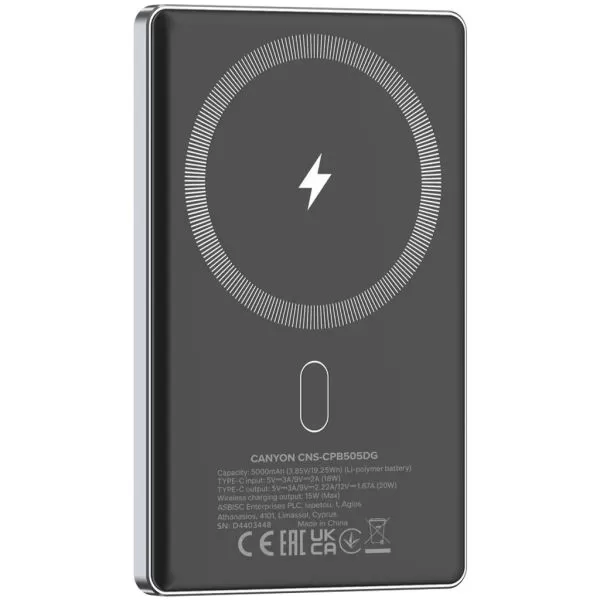 CANYON power bank OnPower 505 slim Magsafe 5000 mAh PD20W Dark Grey