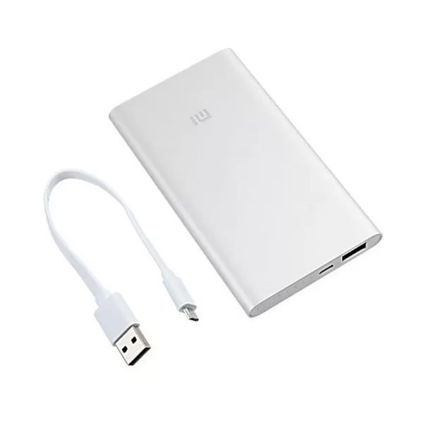 Acumulator portabil universal MI Power Bank 2, capacitate 5000 mAh, cablu cu conector Micro-USB inclus, Argintiu