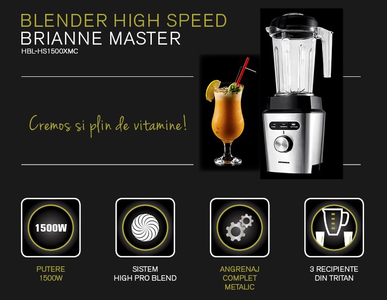 | Caracteristici Blender de masa Heinner HBL-HS1500XMC, 1500W, 1.45L, Gri: | |