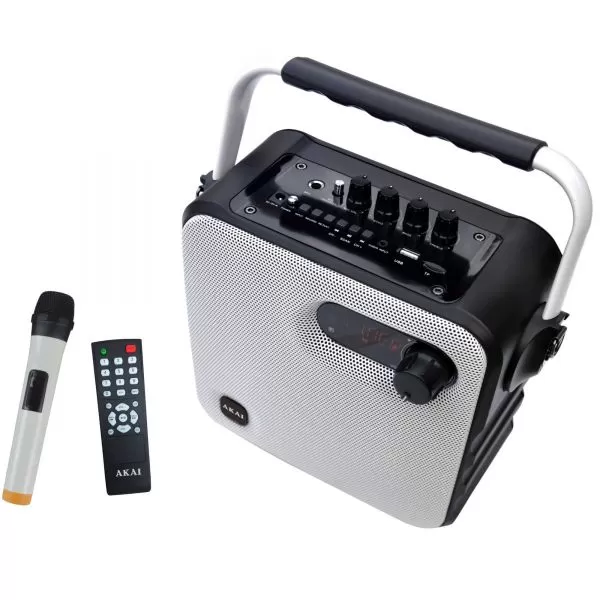 Boxa portabila AKAI ABTS-T5 cu Bluetooth si microfon wireless, OutputPower:30W, compatibila cu MP3, MP4, DVD, PC, Mobile, PC Tablet, Built-inRechargeable Battery: 12V 3.0 Ah, telecomanda inclusa