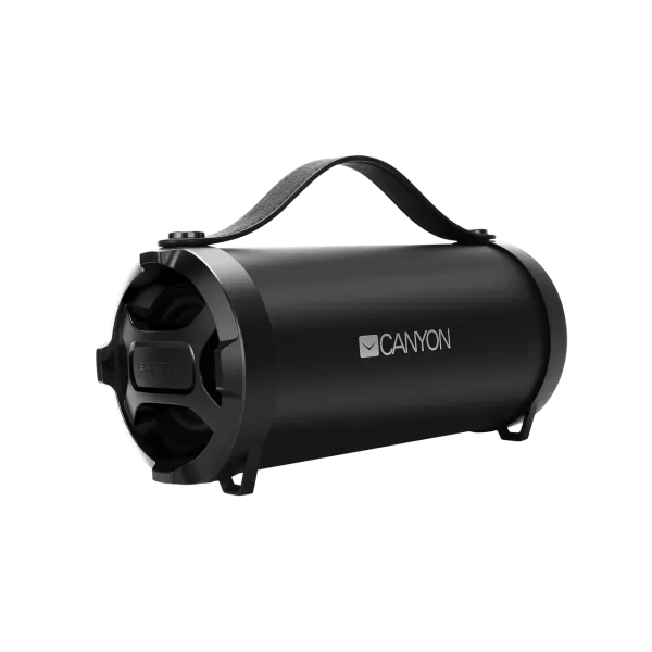 Canyon Bluetooth Speaker, BT V4.2, Jieli AC6905A, TF card support, 3.5mm AUX, micro-USB port, 1500mAh polymer battery, Black, cable length 0.6m, 242*118*118mm, 0.834kg