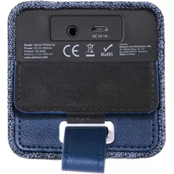 Boxa bluetooth Serioux, portabila, WAVE CUBE 3W, frecventa de raspuns: 90Hz-20KHz, raport semnal/zgomot: 80dB, baterie: 500mAH, autonomie: 5 ore, hands free, aux, material textil, albastru