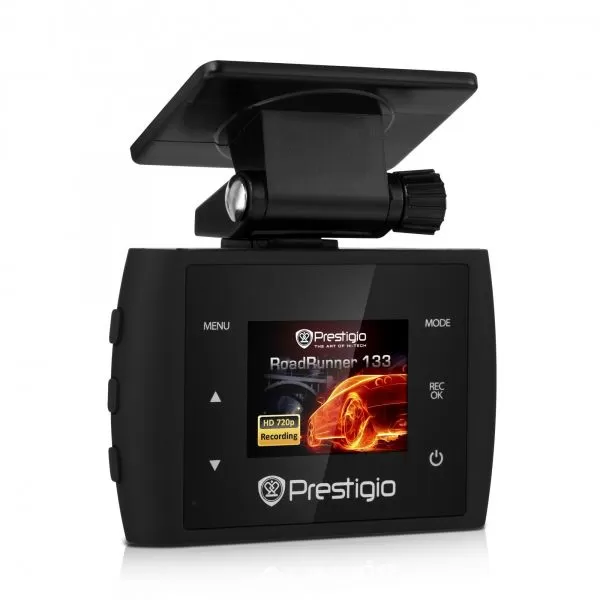 Car Video Recorder PRESTIGIO RoadRunner 133 (HD 1280x720@30 fps, 1.5 inch screen, GPDV6624, 0.3MP CMOS GC0308 image sensor, 3 MP camera (interpolated), 100° Viewing Angle, Micro USB, 120 mAh, Motion Detection, Cyclic Recording, Black, Rubber)