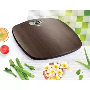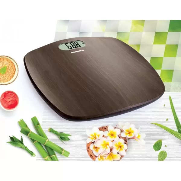 Cantar de baie Heinner Drak Bamboo 180 HBS-BRW180BB, platforma cu design de lemn, capacitate maxima: 180kg, display LCD, gradare: 100g, pornire /oprire automata, indicator baterie descarcata, baterii: 2xAAA