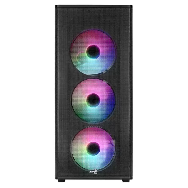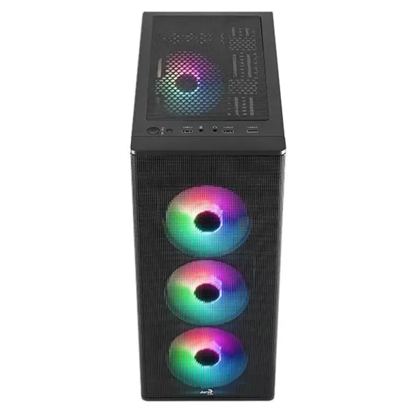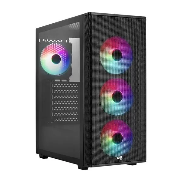 Carcasa Aerocool Designer V2 neagra, ABS + SPCC Steel ATX Mid Tower, fara sursa (tip ATX, montata jos), interior vopsit negru, 2x 2.5”/3.5” (intern), 4x 2.5” (intern), fata – 3x 120mm aRGB LED fans (inclus), spate – 1x 120mm aRGB LED fan (optional), tavan – 2x 120mm / 2x 140mm fan (optional), podea – 2x 120mm fans (optional), 1x USB 3.0, 2x USB 2.0, HD Audio, ATX / microATX / mini-ITX, sloturi expansiune: x7, inaltime maxima cooler procesor: 158mm, lungime maxima placa video: 345mm (fara ventilatoare frontale montate), suport radiator water cooling: fata – 1x 120/240/360(lungime maxima radiator 395mm)mm, spate – 1x 120mm, spatiu pentru cable management de 24.5mm adancime, dimensiuni (WxHxD): 195x448.5x399mm
