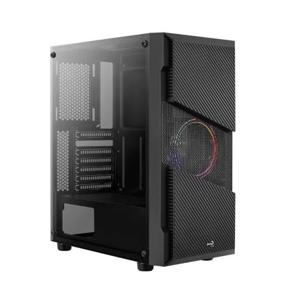 Carcasa Aerocool Menace Saturn V1 iluminare FRGB neagra, SPCC Steel ATX Mid Tower, fara sursa (tip ATX, montata jos), interior vopsit negru, 2x3.5” (1 x 3.5” sau 1 x 3.5”/2.5″ intern), 3x2.5” (2 x 2.5” sau 1 x 2.5”/3.5” intern), fata – 1x 120mm LED fixed RGB fans (inclus) / 2x 120mm / 2x 140mm fans (optional), spate – 1x 120mm fan (optional), tavan – 2x 120mm fans (optional), podea – 2x 120mm fans (optional), design premium cu panou lateral din sticla securizata, 2x USB 3.0, HD Audio ATX / microATX / Mini-ITX, sloturi expansiune: x7, inaltime maxima cooler procesor: 157mm, lungime maxima placa video: pana la 317mm fara radiator montat, suport radiatoare water cooling: fata – 1x 120/240mm, spate – 1x 120mm, dimensiuni: 205x457x392mm