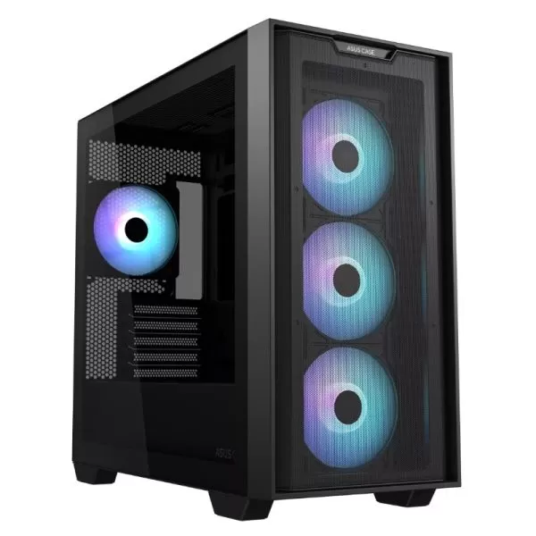 Carcasa ASUS A21 PLUS Mid Tower ARGB NEGRU, Tempered Glass, Sloturi Expansiune 5, Drive Bays: 2x3.5" sau 2x2.5" 1x2.5", Ventilatoare Suportate: 7 (spate: 1x120mm, fata: 3x120mm sau 2x140mm, sus: 3x120mm sau 2x140mm), Ventilatoare Incluse: 4 (spate: 1x120mm, fata: 3x120mm), Format Placa De Baza Suportat: MIni-ITX, Micro-ATX, Lungime Maxima Placa Video: 380mm, Inaltime Maxima Cooler Procesor: 165mm