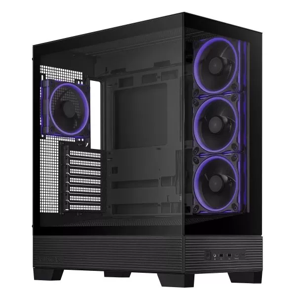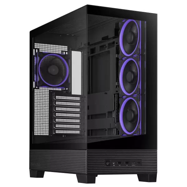 Carcasa ASUS A31 PLUS Mid Tower ARGB NEGRU, Tempered Glass, Sloturi Expansiune 7, Drive Bays: 2x3.5"/2.5", Ventilatoare Suportate: 7 (spate: 1x120mm sau 1x140mm, sus: 3x120mm sau 2x140mm, lateral: 3x120mm), Ventilatoare Incluse: 4 (spate: 1x120mm, lateral: 3x120mm), Format Placa De Baza Suportat: Mini-ITX, Micro-ATX, ATX, Lungime Maxima Placa Video: 380mm, Inaltime Maxima Cooler Procesor: 165mm
