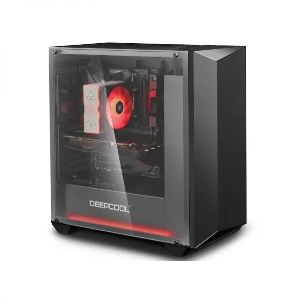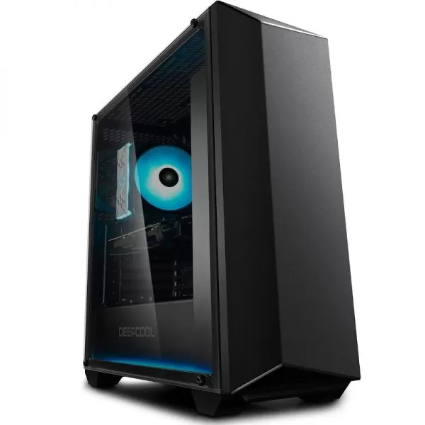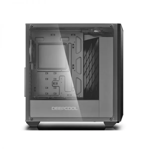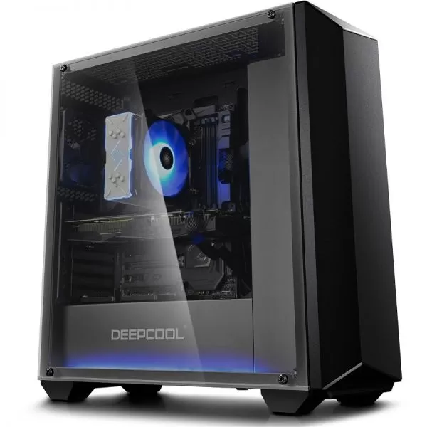 Deepcool Earlkase RGB, SPCC Steel ATX Mid Tower, fara sursa (tip ATX, montata jos), interior vopsit negru, 2x3,5” (intern), 4x2,5” (intern), spate – 1x120mm fan (inclus), fata – 1x 120mm fan (inclus) si 2x 120/140mm fans (optional), tavan – 2x 120/140mm fans (optional), 1x USB 3.0, 1x USB 2.0, HD Audio, controller RGB, sloturi expansiune: x7, ATX / microATX / Mini-ITX, inaltime maxima cooler procesor: 165mm, lungime maxima placa video: 300mm, suport radiatoare water cooling: tavan – 120/240/140/280mm, spate – 120mm, fata – 120/240/360/140/280mm, dimensiuni (LxWxH): 500 x 203.5 x 510.5mm, greutate: 7.98 kg