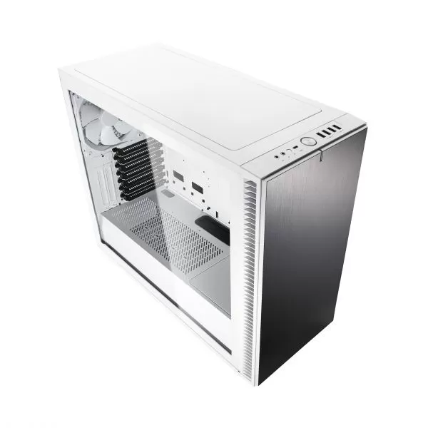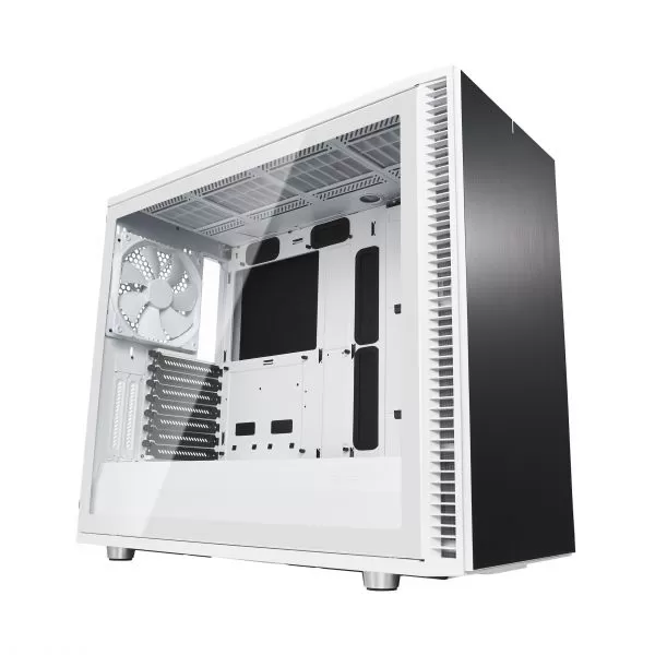 carcasa cu panel frontal din plastic, compatibila cu Mini ITX / Micro ATX / ATX / EATX (pana la 285 mm), include panou lateral din sticla temperata, 3 drive bay de 3.5"/2.5", 2 drive bay dedicate 2.5", 1 x USB 3.1 Gen 2 Type-C, 2x USB 3.0, 2 x USB 2.0 si Audio I/O, include 3 ventilatoare Fractal Design Dynamic X2 GP-14 white, posibilitatea de instalare sisteme de racire pe apa cu radiatoare de pana la 420mm, filtre de praf, culoare alba cu interior negru, dimensiuni: 535 x 233 x 448 mm