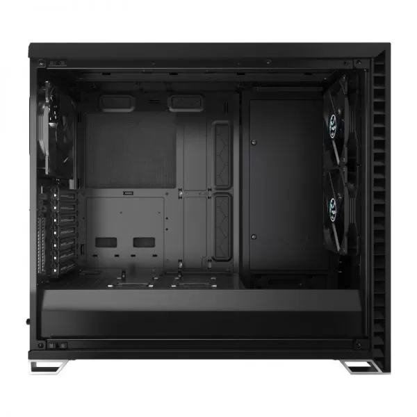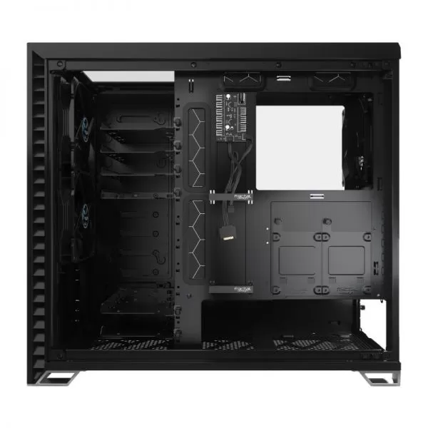 carcasa cu panou frontal din sticla securizata si plastic, panou lateral stanga din sticla securizata, panou tavan din sticla securizata interschimbabil cu panou pentru ventilatie, iluminare ARGB pe panoul frontal continuat pe tavan, include un controller Adjust R1, antifonare cu material de tip industrial, SECC body, interior si exterior de culoare neagra, compatibila cu Mini ITX / Micro ATX / ATX / eATX (pana la 285 mm), 7 sloturi de expansiune + 2 verticale pentru folosire cu riser, 6 drive bay incluse pentru 3.5"/2.5" (maxim 11), 2 drive bay dedicate 2.5'' incluse (maxim 4), design modular al bay-urilor permite montarea acestora in 2 pozitii Open layout si Storage layout, frontpanel: 1 x USB 3.1 Gen 2 Type-C, 2 x USB 3.0, Audio, include 3 ventilatoare Fractal Design Dynamic X2 GP-14 (140mm), hub ventilatoare Nexus+ 2 ce permite conectarea a 3 ventilatoare cu PWM (4 pini) si a inca 6 ventilatoare fara PWM (3 pini), 2 filtre de praf pe front si pe intreaga lungime a podelei si filtru de praf pe tavan (cu bracketul de ventilatie montat), dimensiuni LxWxH: 552 x 233 x 498 mm, suporta cooler CPU cu inaltime pana la 185 mm si VGA cu lungimea pana la 440 mm (cu ventilatoarele fata montate), suporta racire pe apa pana la 420 in tavan (inaltime maxima componente MB 35 mm) 360 pe front, 280 pe podea si 120 pe spate, EAN 7340172701965.