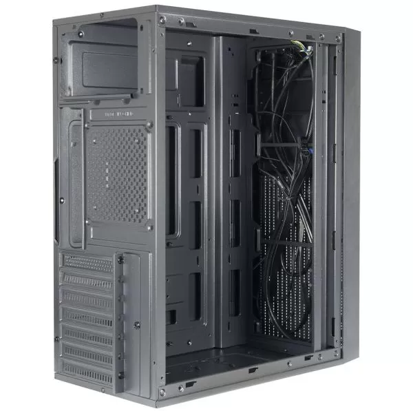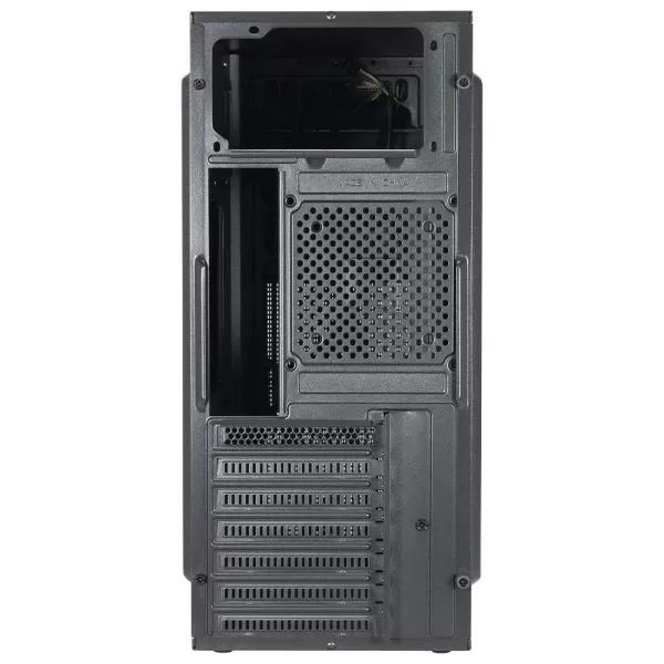 Carcasa Inter-Tech A-301 Quad neagra, SECC Steel ATX Mid Tower Case, fara sursa (tip ATX, montata sus), interior vopsit negru, 1x5.25” (extern, suporta unitati de maxim 170mm lungime), 1x3.5” sau 1x 2.5” (intern), fata – 3x 120mm fans (optional), spate – 1x 80mm fan (optional), 2x USB 3.2 Gen1, 2x USB 2.0, HD Audio, Mini-ITX, Micro-ATX, ATX (max. 305 mm × 244 mm, 12″ × 9,6″), sloturi expansiune: x7, inaltime maxima cooler procesor: 145mm, lungime maxima placa video: 240mm, dimensiuni (WxDxH): 195x345x415mm, greutate: 2.1Kg