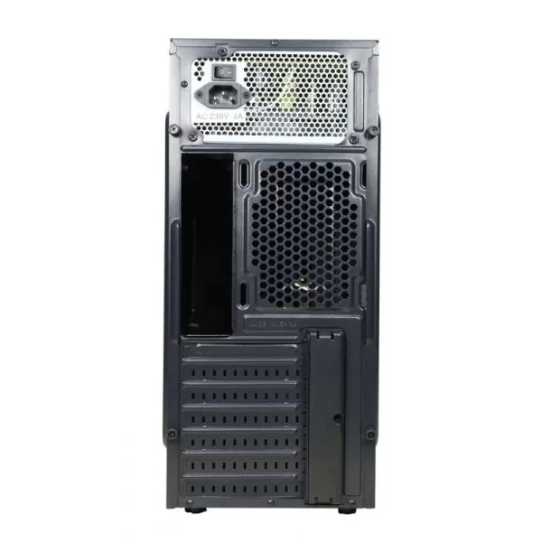 Inter-Tech K-05 Case With 500W PSU, SECC Steel ATX Mid Tower Case, cu sursa 500W (tip ATX, montata sus), interior vopsit negru, 1x5.25” (extern), 1x3.5” (intern), 3x2.5” (intern), fata – 2x 120/140mm (optional), spate – 1x 120/140mm fan (optional), lateral – 1x 120mm fans (optional), 2x USB 2.0, HD Audio, ATX / microATX, sloturi expansiune: x7, inaltime maxima cooler procesor: 150mm, lungime maxima placa video: 320mm, dimensiuni (h/w/d): 425 x 180 x 385mm