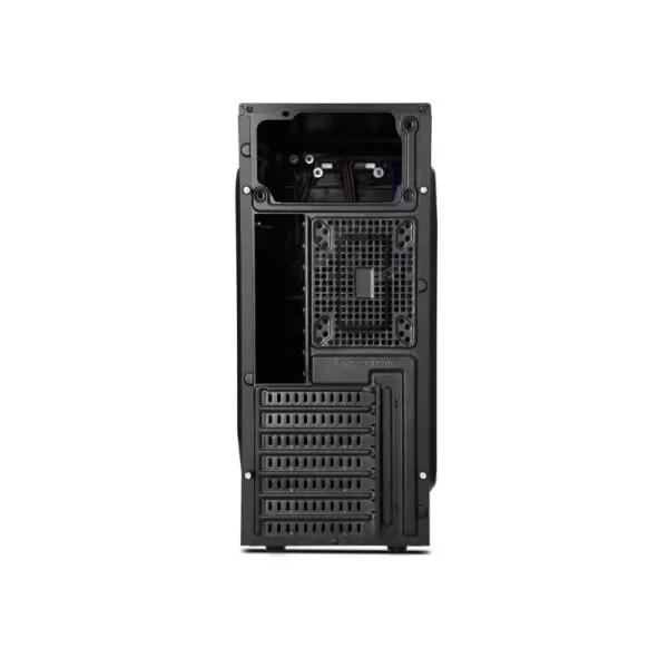 Segotep And 5 Black Case, SPCC Steel ATX Mid Tower, fara sursa (montata sus), interior vopsit negru, 1x 5.25”(extern), 2x 2.5”(intern), 2x 3.5” (intern), spate – 1x 120mm (optional), fata – 1x 120mm Blue LED Fan (inclus), 1x USB3.0, 2x USB 2.0, HD Audio, ATX / Micro ATX, panou lateral din tabla si plexiglas si fata din plexiglas, sloturi expansiune: x7, inaltime maxima cooler procesor: 145mm, lungima maxima placa video: 230mm, dimensiuni (WxHxD): 178x422x411mm