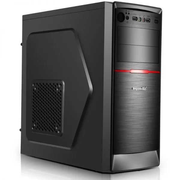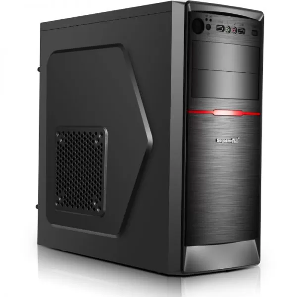 Segotep AND Black/Red, SPCC Steel ATX Mid Tower, fara sursa, interior vopsit negru, 2x5.25” (extern), 3x3.5” (intern), 1x2.5” (intern), spate – 1x 80mm fan (inclus) sau 1x 92mm fan (optional), lateral – 1x 140/120mm fan (optional), 2x USB 2.0, HD Audio, ATX / microATX, sloturi expansiune: x7, inaltime maxima cooler procesor: 160mm, lungime maxima placa video: 350mm, dimensiuni: 480 x 190 x 425mm