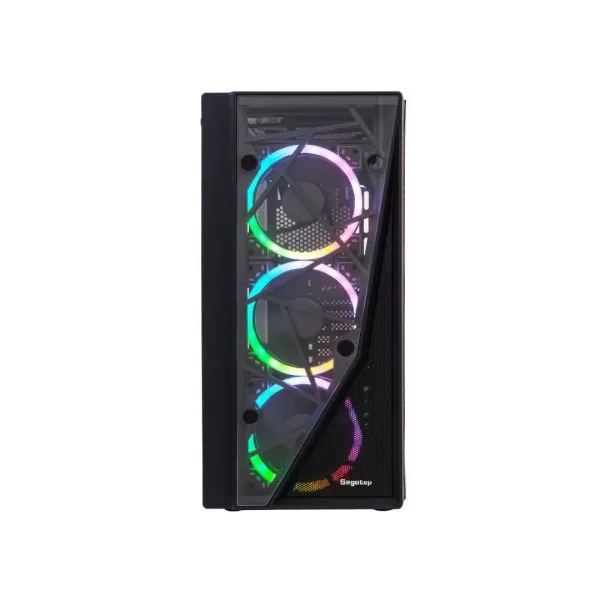 Carcasa Segotep Prime XL V2 neagra, SPCC Steel ATX Mid Tower, fara sursa (tip ATX, montata jos), interior vopsit negru, 2x 2.5”/3.5" (intern), 2x 2.5" (intern), fata – 3x 120mm LED RGB fans (inlcus) / 2x 140mm (optional), spate - 1x 120mm fan (optional), tavan –2x 120/140mm (optional), podea – 2x 120mm fan (optional), panou lateral din sticla securizata, 1x USB 3.0, 2x USB 2.0, HD Audio, ATX / microATX / Mini-ITX, sloturi expansiune: x7, inaltime maxima cooler procesor: 160mm, lungime maxima placa video: 320mm, includecontroller (suporta maxim 8 ventilatoare si 2 benzi RGB) si telecomanda, dimensiuni: 394x206x450mm