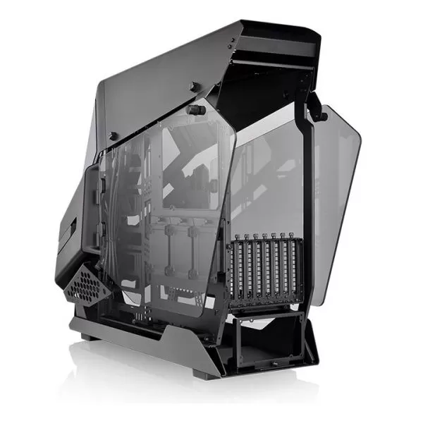 Carcasa Thermaltake AH T600 Tempered Glass neagra SPCC Steel ATX Full Tower, fara sursa (tip ATX, montata jos), interior vopsit negru, design premium cu panou lateral din sticla securizata cu grosimea de 5mm, 2x3.5”/2.5” (intern), design tool-less, fata – 4x 120mm / 3x 140mm fans (optional), tavan – 3x 120mm / 2x 140mm fans (optional),interior dreapta – 3x 120mm / 2x 140mm fans (optional). 1x Type-C, 2x USB 3.0, 1x USB 2.0, HD Audio, sloturi expansiune: x8, E-ATX / ATX / microATX / Mini-ITX, inaltime maxima cooler procesor: 195mm, lungime maxima placa video: 300mm cu pompa racire pe apa montata sau 440mm fara pompa racire pe apa montata, suport radiatoare water cooling: fata – 1 x 480/360/240/120/420/280/140mm, tavan –1 x 360/240/120/ 280/140mm, interior dreapta –1 x 360/ 240/120/280/140mm, dimensiuni (HxWxD): 628.3 x 337 x 763 mm, greutate: 20.64kg