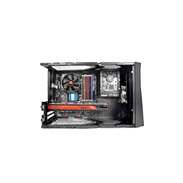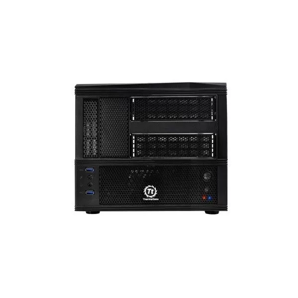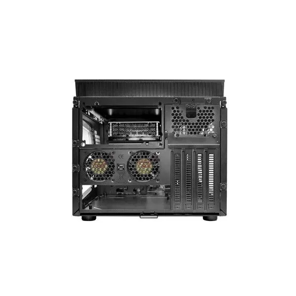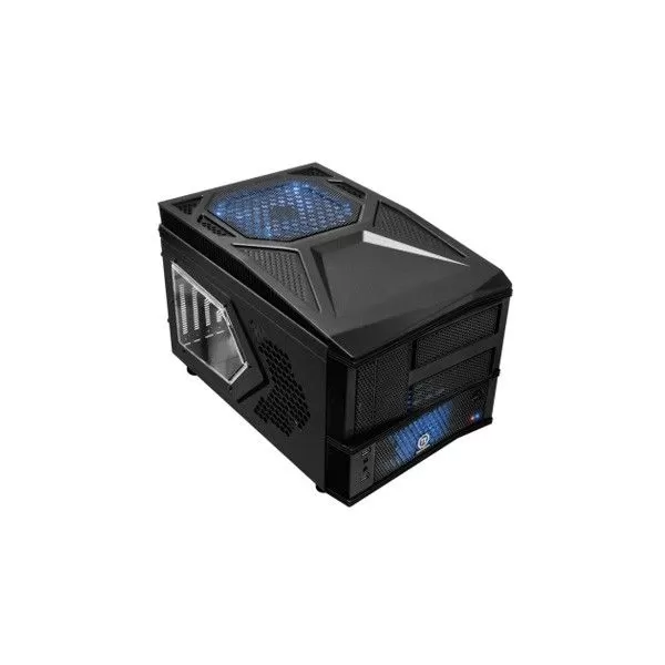 Thermaltake Armor A30i Window, SECC & Aluminium Cube, fara sursa (tip ATX, montata sus), interior vopsit negru, 2x 5.25” (extern), 1x 3.5” (extern), 2x 3.5” (intern), 2x.2.5” (intern), fata – 1x 92mm Blue LED fan (1200 RPM, 16dBA, inclus), spate – 2x 60mm (1500 RPM,18dBA, inclus), tavan – 1x 200mm Blue LED fan (800 RPM, 15dBA, inclus), 2x USB 3.0, HD Audio, Micro ATX / Mini ITX, , inaltime maxima cooler procesor: 90mm, lungime maxima placa video: 350mm, dimensiuni (HxWxD): 266x291x456mm, greutate: 5.7kg
