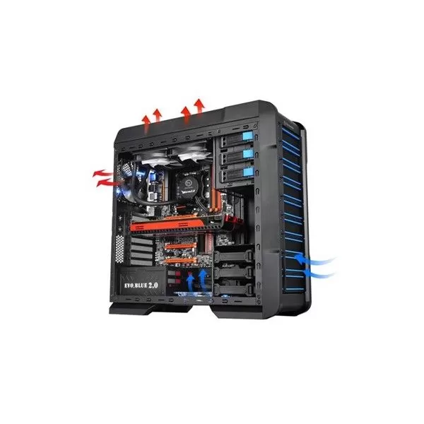 Thermaltake Chaser A31, SECC Steel ATX Mid Tower, fara sursa, interior vopsit in negru, 3x5.25” (extern), 1x3.5” (extern, convertibil dintr-un bay de 5.25”), 6x3.5”/2.5” (intern), design tool-less, front – 1x 120mm Turbo fan (1000 RPM, 16 dBA, inclus) si 1x 120mm fan (optional), rear – 1x 120mm Blue LED fan (1000 RPM, 16 dBA, inclus), bottom – 1x 120mm fan (optional), top – 2x 140/120mm fans (optional), 2x USB 3.0, HD Audio, include suport pentru casti, ATX / microATX, dimensiuni: 501 x 212 x 495mm, greutate: 6.5 kg
