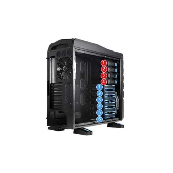 Thermaltake Chaser MK-I, SECC Steel ATX Full Tower, fara sursa, interior vopsit in negru, 4x5.25” (extern), 1x3.5” (extern, convertibil dintr-un bay de 5.25”), 6x3.5”/2.5” (intern), 1x3.5”/2.5” (HDD Docking Station), design tool-less, front – 1x 200mm Colorshift fan (600-800 RPM, 13-15 dBA, inclus) sau 2x 120mm fans (optional), rear – 1x 140mm Turbo fan (1000 RPM, 16 dBA, inclus) sau 1x 120mm fan (optional), bottom – 1x 120mm fan (optional), top – 2x 200/140/120mm fans (1x 200mm Colorshift fan, 600-800 RPM, 13-15 dBA, inclus), side – 1x 200mm fan (optional), 2x USB 3.0, 2x USB 2.0, 1x eSATA, HD Audio/AC'97, include fan/light controller, Breath Lighting effect, include suport pentru casti, ATX / microATX, dimensiuni: 567.9 x 237.0 x 581.6 mm