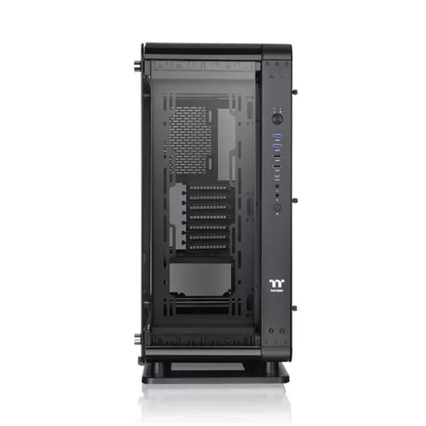Carcasa Thermaltake Core P6 Tempered Glass Edition neagra, SGCC Steel ATX Mid Tower, fara sursa, design premium cu panouri laterale din sticla securizata cu grosimea de 4mm, posibilitatea montarii placii video in pozitie verticala (cablul Thermaltake PCI-e X16 Riser Cable nu este inclus), interior vopsit negru, 4x3.5” (intern) sau 8x 2.5” (intern), design tool-less, fata – 3x 120mm fan / 2x 140mm fan (optional), spate – 1x 120mm fan (optional), tavan – 3x 120mm fan / 2x 140mm fan (optional), partea dreapta – 3x 120mm fan / 2x 140mm fan (optional), podea – 3x 120mm fan / 2x 140mm fan (optional), 1x USB 3.2 (Gen 2) Type-C, 2x USB 3.0, 2x USB 2.0, HD Audio, sloturi expansiune: x7 se pot roti, CEB / ATX / microATX / Mini-ITX, inaltime maxima cooler procesor: 180mm, lungime maxima placa video: 300mm (cu rezervor) sau 400mm (fara rezervor), lungime maxima sursa alimentare: 200mm, suport radiatoare water cooling: fata – 1x 120/240/360/140/280mm, spate – 1x 120mm, partea dreapta – 1 x 120/240/360/140/280mm, podea – 1x 120/240mm, doua posibilitati de utilizare: montata pe perete sau vertical, dimensiuni: 565 x 255 x 530mm, greutate: 17.84kg