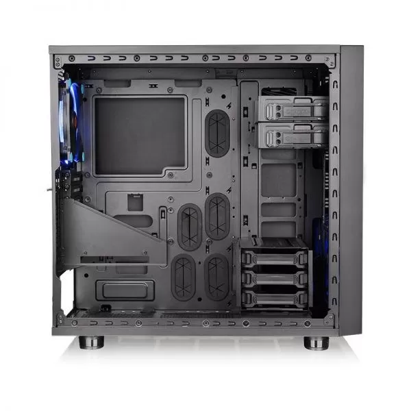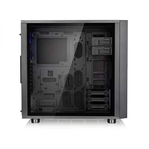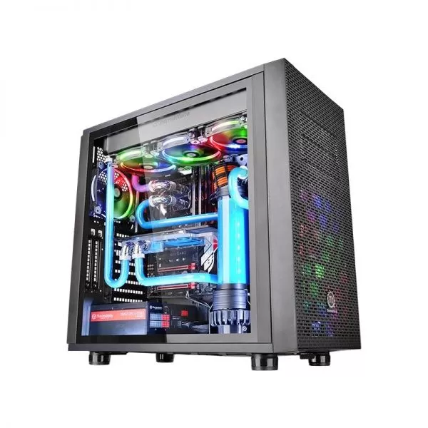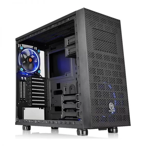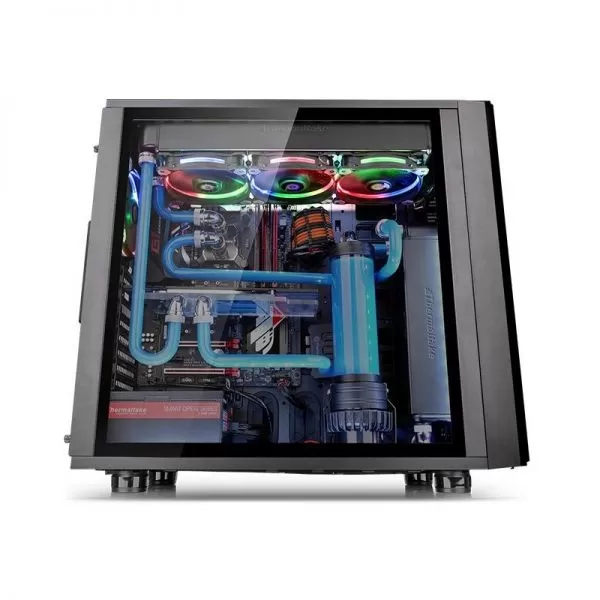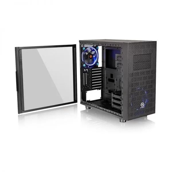 Thermaltake Core X31 Tempered Glass Edition, SPCC Steel ATX Mid Tower, fara sursa (tip ATX, montata jos), design premium cu panoul lateral din sticla securizata cu grosimea de 4mm, interior vopsit negru, design modular ce permite personalizarea posibilitatilor de stocare, posibilitatea montarii placii video in pozitie verticala (cablul Thermaltake PCI-e X16 Riser Cable nu este inclus), protectie excelenta impotriva prafului cu filtre de praf super fine si un filtru de praf magnetic in partea superioara, 2x5.25” (extern), 3x3.5”/2.5” (intern), design tool-less, fata – 1x 140mm Riing LED Blue fan (1400 RPM, 28 dBA / 1000 RPM, 22 dBA cu LNC, inclus) si 1x 140mm fan (optional) / 2x 120mm fans (optional) / 1x 200mm fan (optional), spate – 1x 140mm Riing LED Blue fan (1400 RPM, 28 dBA / 1000 RPM, 22 dBA cu LNC, inclus) sau 1x 120mm fan (optional), podea – 2x 140/120mm fans (optional), tavan – 2x 200mm sau 3x 140mm sau 3x 120mm fans (optional), 2x USB 3.0, 2x USB 2.0, HD Audio, sloturi expansiune: x8+2, ATX / microATX / Mini-ITX, inaltime maxima cooler procesor: 180mm, lungime maxima placa video: 278mm (cu cusca HDD) sau 420mm (fara cusca HDD), lungime maxima sursa alimentare: 180mm (cu ventilator podea instalat) sau 220mm (fara ventilator podea instalat), suport radiatoare water cooling: fata – 1 x 360mm sau 1 x 280mm, tavan – 1 x 360mm sau 1 x 280mm, spate – 1 x 120mm sau 1 x 140mm, podea – 1 x 120mm sau 1 x 140mm, filtre de praf incluse, dimensiuni: 497 x 250 x 511 mm, greutate: 8.8kg