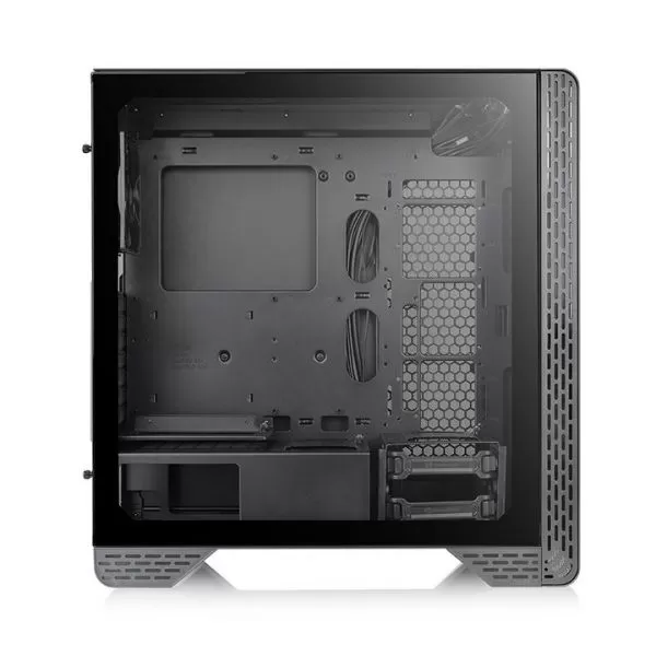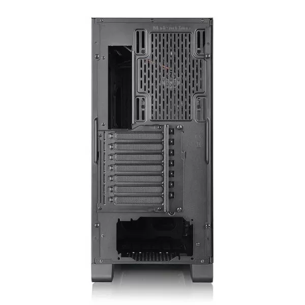 Carcasa Thermaltake S300 Tempered Glass neagra, SPCC Steel ATX Mid Tower, fara sursa (tip ATX, montata jos), interior vopsit negru, design premium cu panou lateral din sticla securizata cu grosimea de 4mm, 2x 3.5”/2.5” (intern), 2x 3.5” (intern), 2x 2.5” (intern fara bracket HDD), design tool-less, fata – 3x 120/140 / 2x 200mm fans (optional), spate – 1x 120mm fan (1000 RPM, 16dBA, inclus), tavan – 3x 120mm / 2x 140mm / 1x 200mm fans (optional), 1x USB 3.0, 2x USB 2.0, HD Audio, sloturi expansiune: x7, ATX / microATX / Mini-ITX, inaltime maxima cooler procesor: 170mm, lungime maxima placa video: 280mm (cu rezervor montat) sau 360mm (fara rezervor montat), suport radiatoare water cooling: fata – 1 x 280/360mm, tavan – 1 x 240/280mm, spate – 1x 120/140mm, interior dreapta – 1x 360mm fara rack HDD, dimensiuni (HxWxD): 493 x 230 x 508 mm, greutate: 11.05kg