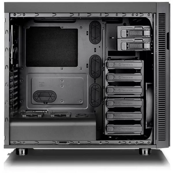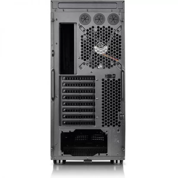 Thermaltake Suppressor F51 Power Cover Edition, SPCC Steel EATX Full Tower, fara sursa (tip ATX, montata jos), interior vopsit negru, 2x5.25” (extern), 6x3.5”/2.5” (intern), 2x2.5” (intern), design tool-less, fata – 1x 200mm fan (600-800 RPM, 13-15 dBA, inclus) sau 2x 140mm fans (optional) sau 3x 120mm fans (optional), spate – 1x 140mm Turbo fan (1000 RPM, 16 dBA, inclus) sau 1x 120mm fan (optional), podea – 2x 120mm fans (optional), tavan – 2x 200mm fans (optional) sau 3x 140/120mm fans (optional), 2x USB 3.0, 2x USB 2.0, HD Audio, sloturi expansiune: x8, EATX / ATX / microATX / Mini-ITX, inaltime maxima cooler procesor: 185mm, lungime maxima placa video: 310mm (cu rack HDD) sau 465mm (fara rack HDD), lungime maxima sursa: 220mm (cu ventilatorul din podea instalat), suport radiatoare water cooling: fata – 1 x 360mm sau 1 x 420mm, tavan – 1 x 360mm sau 1 x 420mm, spate – 1 x 120mm, podea – 1 x 240mm, dimensiuni: 525 x 230 x 577mm, greutate: 12.2kg