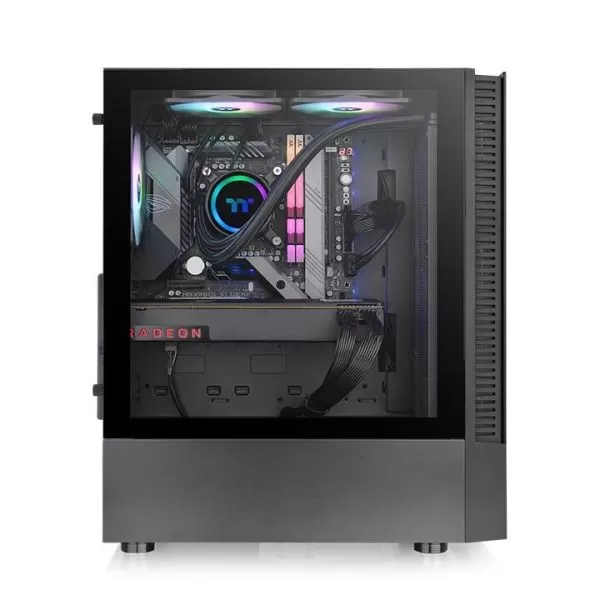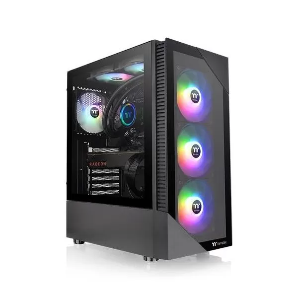 Carcasa Thermaltake View 200 Tempered Glass aRGB neagra, SPCC Steel ATX Mid Tower, fara sursa, interior vopsit negru, 2x2.5”/3.5” (intern), 3x 2.5” (intern), design tool-less, fata – 3x 120mm LED aRGB Lite fans (1000rpm, 22.3 dBA, inclus) sau 2x 140mm fans (optional), spate – 1x 120mm fan (optional), tavan – 2x 120/140mm fans (optional), design premium cu panou lateral si frontal din sticla securizata de 3mm, 2x USB 3.0, HD Audio, sloturi expansiune: x7, ATX / microATX / Mini-ITX, inaltime maxima cooler procesor: 166mm, lungime maxima placa video: 300mm (cu radiator montat) sau 330mm (fara radiator montat), lungime maxima sursa alimentare: 190mm (fara cage HDD), suport radiatoare water cooling: fata – 1 x 120/140/240/280/360mm, tavan – 1 x 120/240mm, spate – 1 x 120mm, filtre de praf incluse, dimensiuni(HxWxD): 460 x 210 x 395mm, greutate: 5.1kg