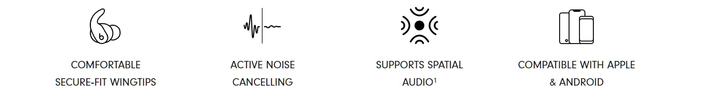 Conceput pentru confort Beats Fit Pro este echipat cu varfuri de aripi confortabile, cu fixare sigura, care se flexeaza pentru a se potrivi urechii tale. Designul universal al varfurilor de aripi a fost supus la testul suprem de catre sportivi de toate tipurile, astfel incat poti avea incredere ca aceste casti vor ramane in pozitie pe parcursul zilelor de lucru si al antrenamentelor. |