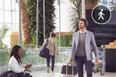 | Functia de auditie inteligenta, oferita prin controlul adaptiv al sunetului, se regleaza automat, indiferent ce faceti Functia de auditie inteligenta, oferita prin controlul adaptiv al sunetului, detecteaza activitatile dvs., fie ca mergeti, calatoriti sau asteptati, apoi regleaza pentru dvs. setarile privind sunetul ambiental. Puteti personaliza aceasta functie conform preferintelor dvs., cu ajutorul aplicatiei Sony | Headphones Connect. |