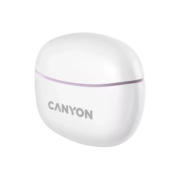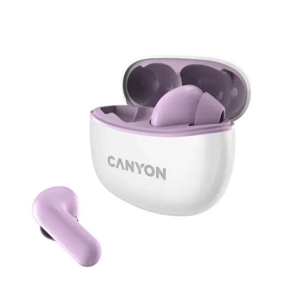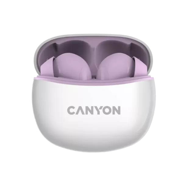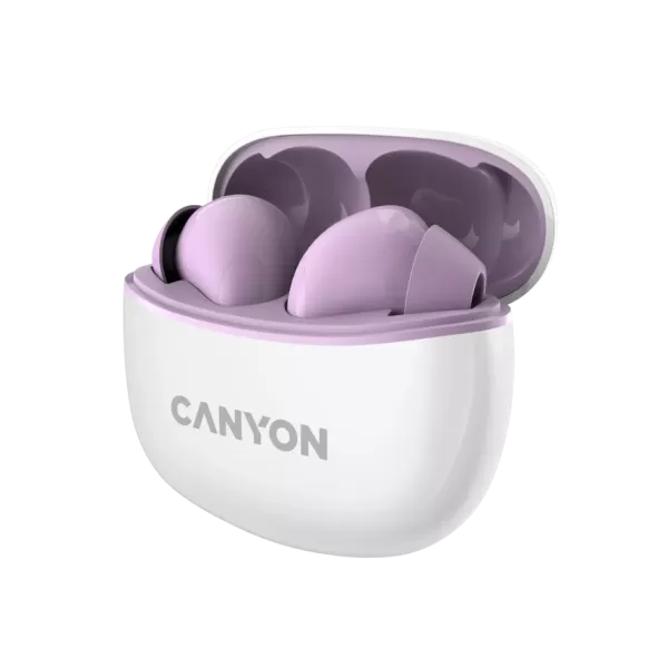 Canyon TWS-5 Bluetooth headset, with microphone, BT V5.3 JL 6983D4, Frequence Response:20Hz-20kHz, battery EarBud 40mAh*2+Charging Case 500mAh, type-C cable length 0.24m, size: 58.5*52.91*25.5mm, 0.036kg, Purple