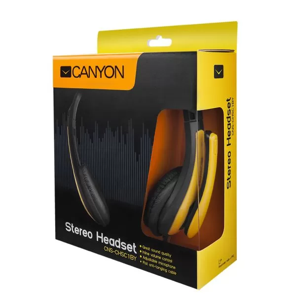 Canyon entry price PC headset, combined 3,5 plug, leather pads, Black-yellow