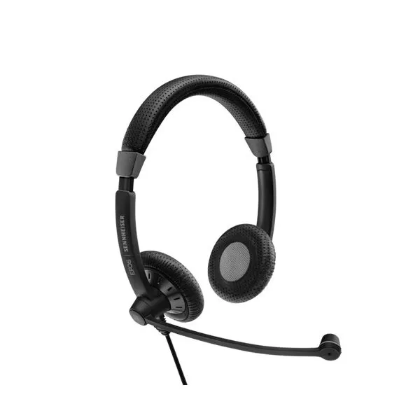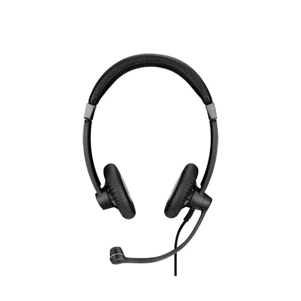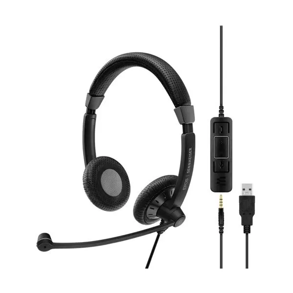 SC 75 USB MS Wired, double-sided headset with 3.5 mm jack and USB connectivity and EU Noise at Work limiter. Ideal headset for office professionals who value comfort, style and great sound and manage calls on both mobile and PC. Microsoft Teams certified.
