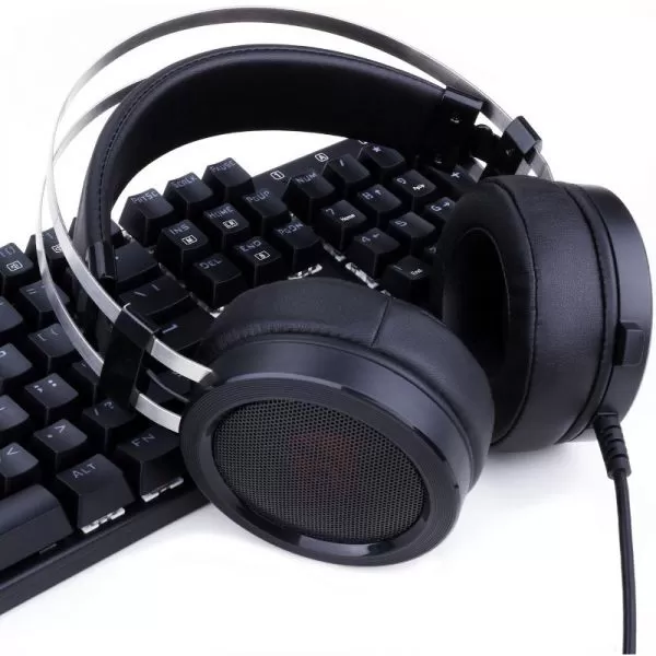 Redragon Scylla Black, include microfon (sensibilitate: -38dB±3dB, impedanta: 2.2KΩ), difuzoare: 40mm (raspuns in frecventa: 20Hz-20KHz, sensibilitate (S.P.L): 115dB±3dB), design ergonomic, conectori: 2x jack 3.5mm TRS, lungime cablu: 2m