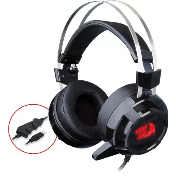 Redragon Siren 2 Black, sunet surround 7.1, functie de vibratii, include microfon (sensibilitate: -45dB±3dB, impedanta: 2.2KΩ), difuzoare: 40mm (frecventa raspuns: 20Hz-20KHz, sensibilitate (S.P.L): 115dB, impedanta: 32Ω), iluminare LED, telecomanda pe fir, design ergonomic, conectori: 1x USB, lungime cablu: 2m